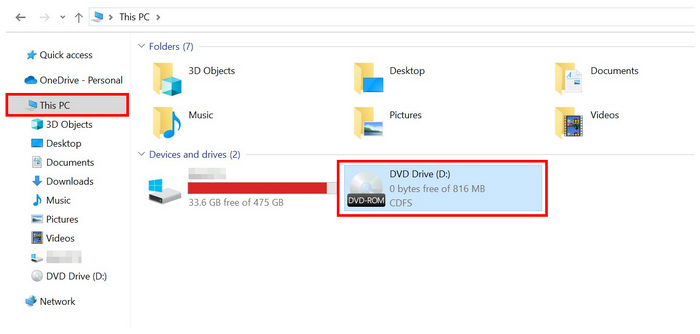 Step 1.Load the DVD you want to open on your computer. You can use an external DVD driver or a built-in one if your device has one. Look at the This PC section of your file manager to check if your computer has scanned the DVD, and then open it.
