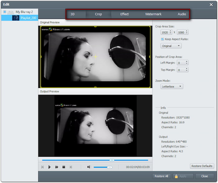 Steg 3.När skivan har identifierats kan du anpassa Blu-ray-innehållet innan du fortsätter med konverteringen. Klicka på Redigera för att komma åt redigeringsverktygen och använda dem för att: