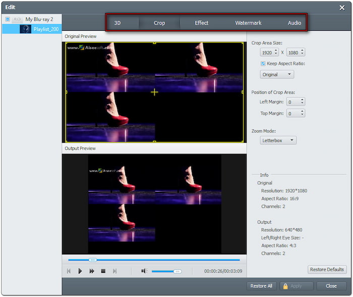 Aşama 3.Yazılım Blu-ray'i başarıyla okuduktan sonra içeriği özelleştirebilirsiniz. Düzenlemek Araçlara erişmek ve bunları kullanmak için düğmeye tıklayın: