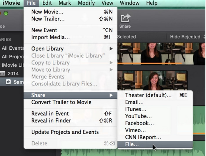 Βήμα 2.Επιλέξτε την ταινία που θέλετε να εξαγάγετε και κάντε κλικ στο Αρχείο στην επάνω γραμμή μενού. Στη συνέχεια, επιλέξτε Κοινή χρήση > Αρχείο να προχωρήσει.